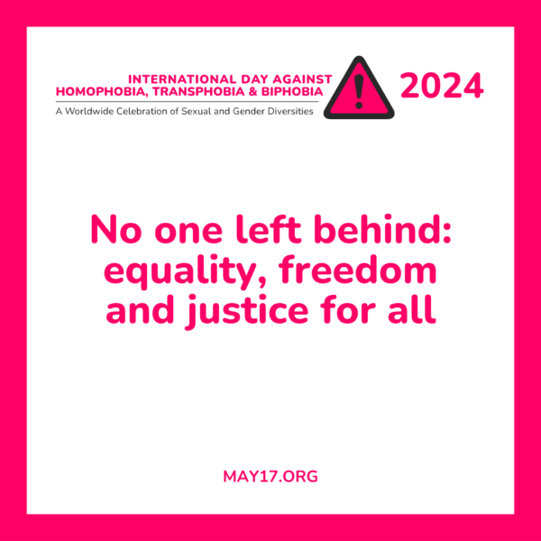 To spotlight the advances and challenges in protecting the rights of 2SLGBTQIA+ , the theme of the International Day Against Homophobia, Transphobia and Biphobia this year is: “No one left behind: Equality, freedom and justice for all.”